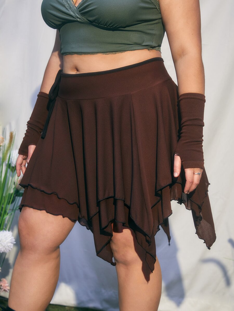 Fairycore Falda Asimétrica De Hem Con Cordón Lateral Para Mujeres De Talla Grande