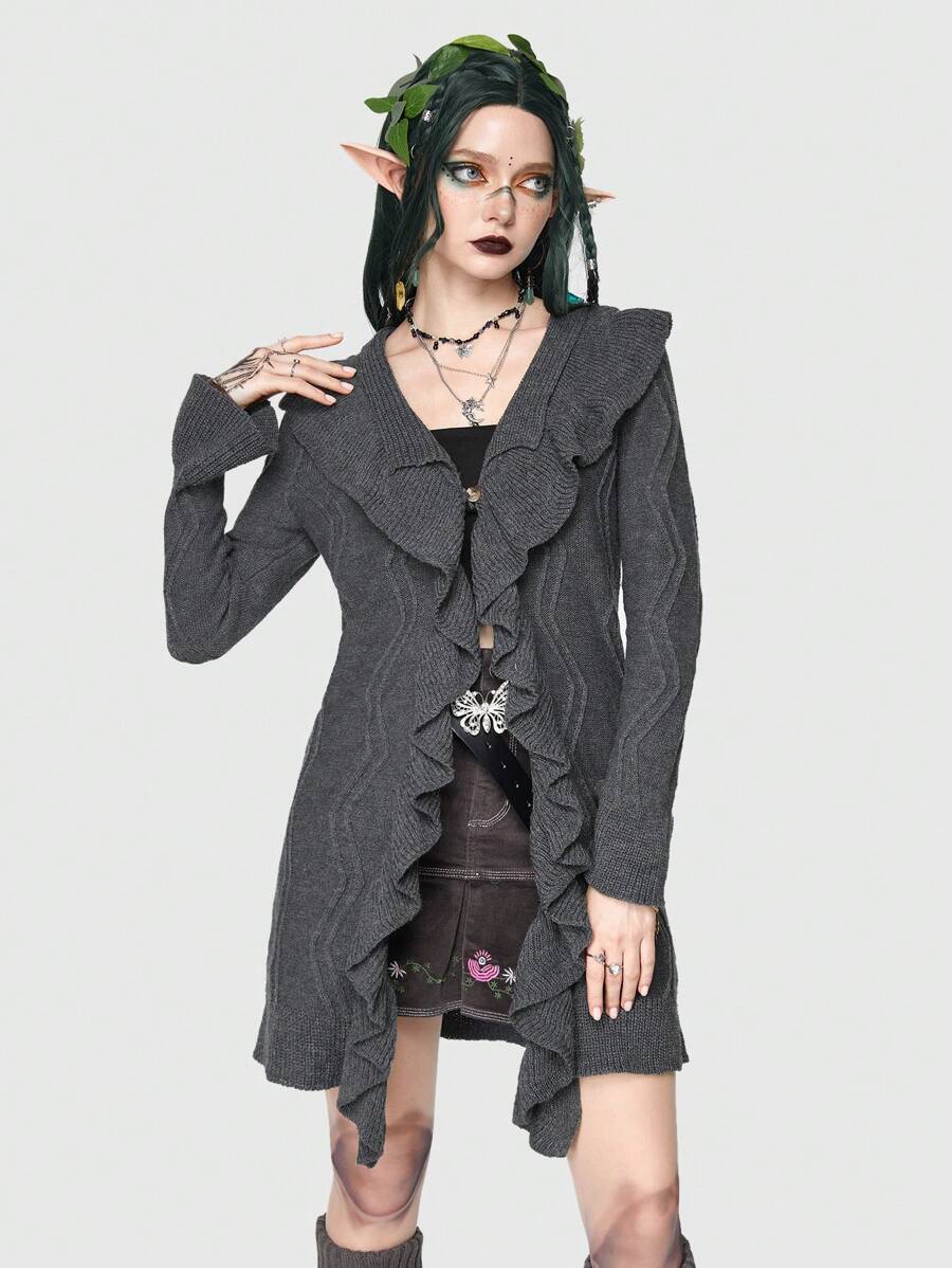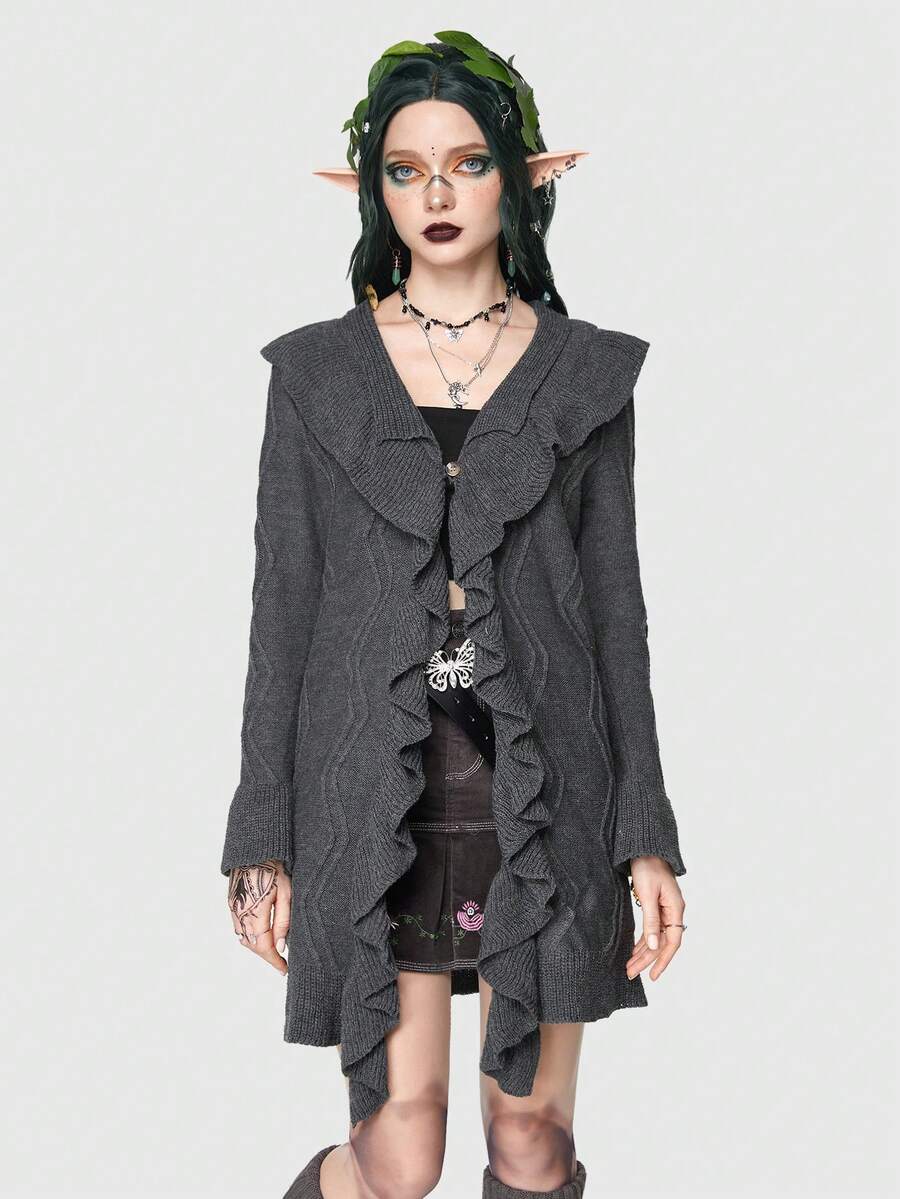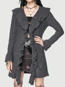 Fairycore Cárdigan de plumero ribete con fruncido de manga con volante