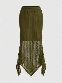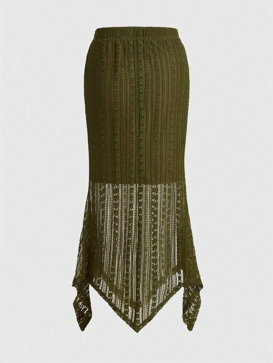 Fairycore Falda De Encaje Con Dobladillo Asimétrico Liso