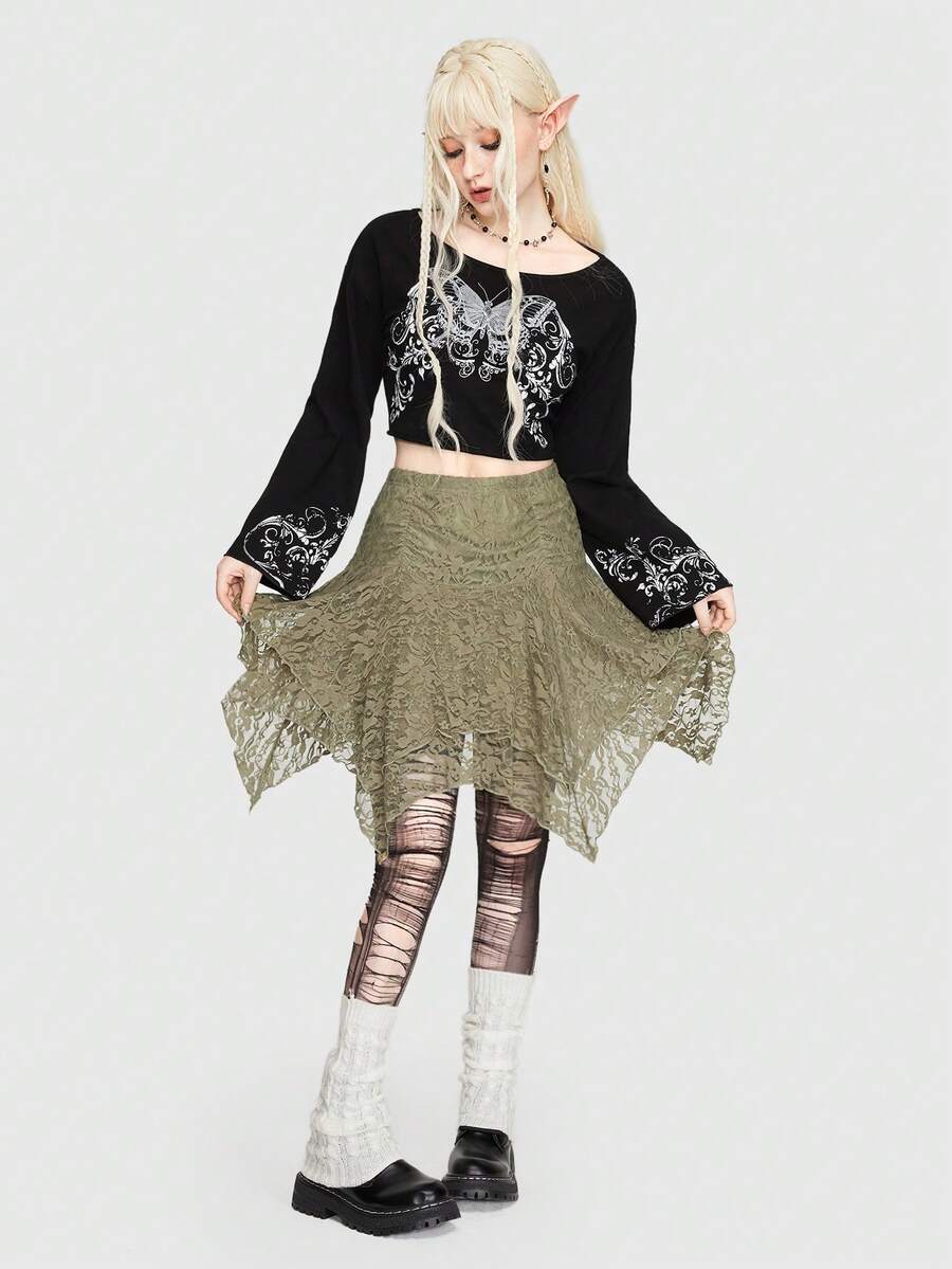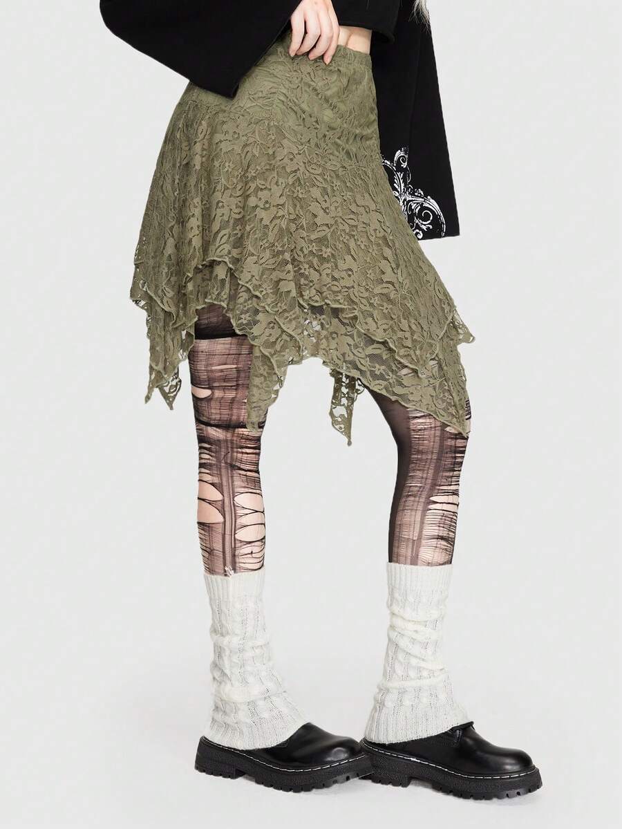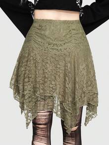 Fairycore Falda De Mujer De Encaje De Color Liso