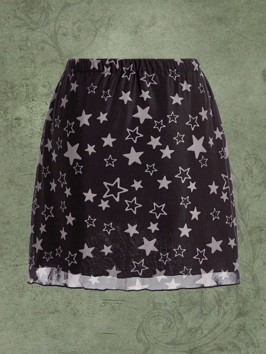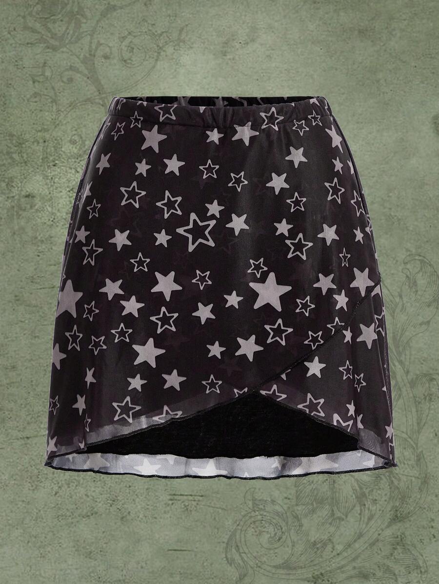 Fairycore Falda cruzada con estampado de estrella