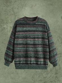 Fairycore Jersey De Cuello Redondo Y Tejido Acanalado Con Rayas