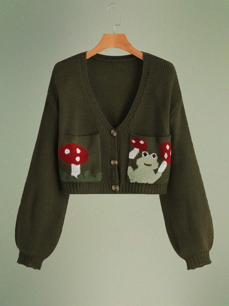 Fairycore Cárdigan Estampado De Dibujos Animados Para Mujer