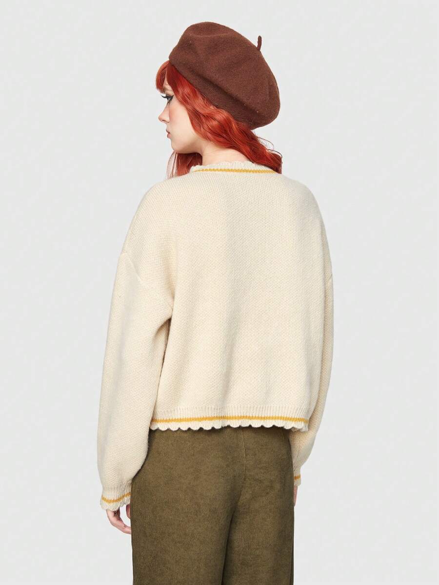 Fairycore Cárdigan Con Cuello De Encaje Y Bordado Floral Para Mujer