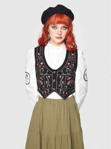 Fairycore Chaleco Chaqueta Impresión Floral Para Mujer