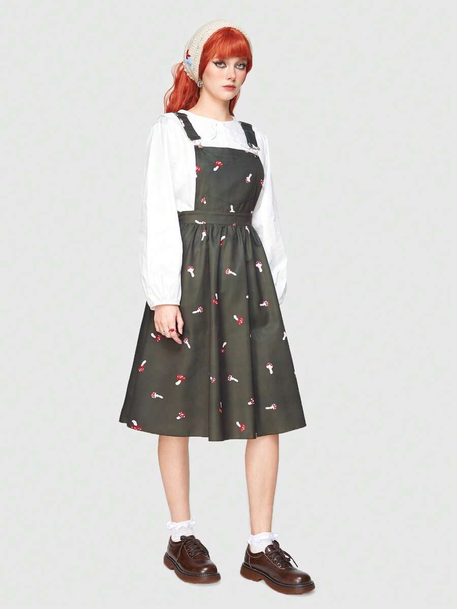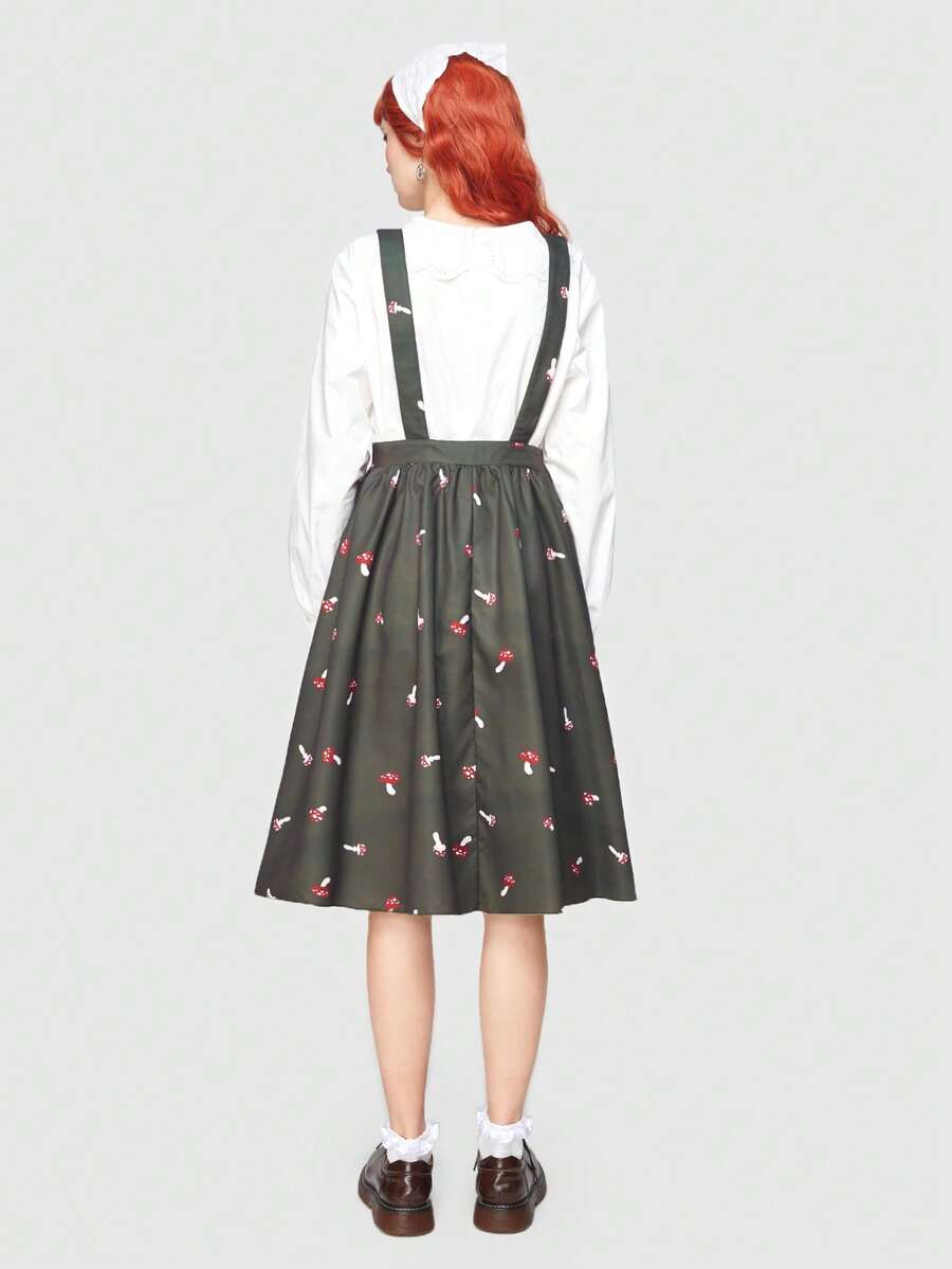 Fairycore Vestido Con Estampado De Setas Para Mujer Sin Camisa