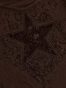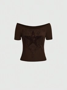 Fairycore Camiseta De Hombro Descubierto Para Mujer Con Estampado De Cinco Puntos Estrella