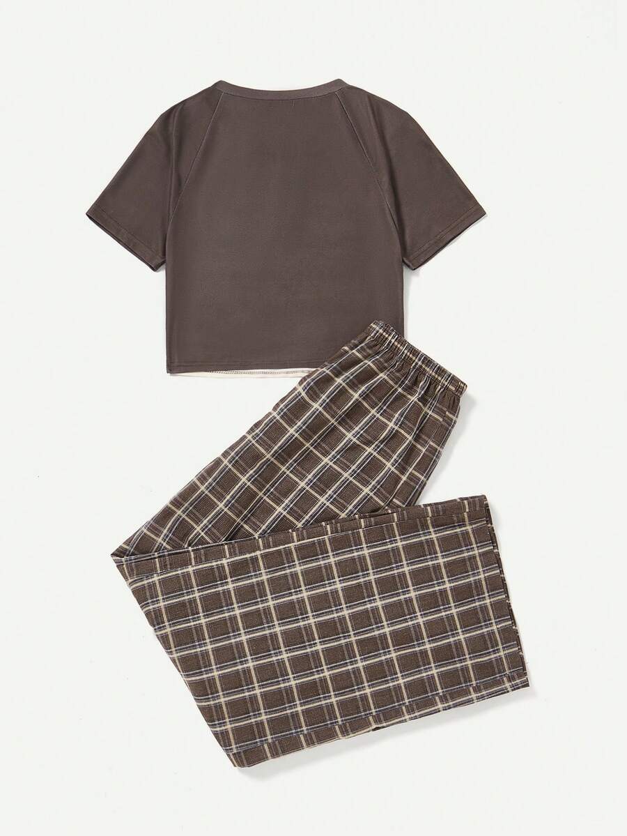 Fairycore Conjunto De Pijama De Manga Raglán Para Mujer Con Camiseta Y Pantalones A Cuadros