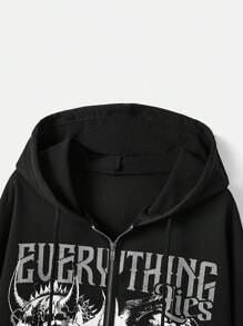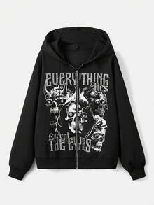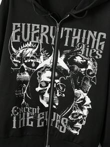Fakhri Hilmi Grunge Punk Capucha con cremallera con letra con estampado de cráneo