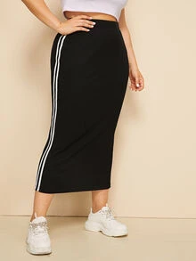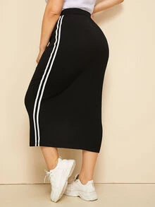 Falda lápiz de canalé con cinta lateral de rayas-grande