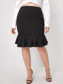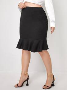 Falda sirena unicolor de longitud de rodilla