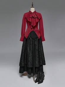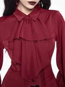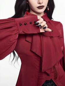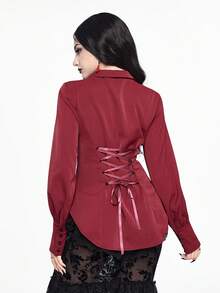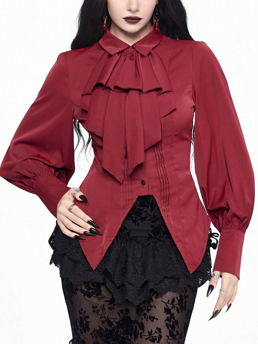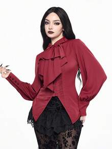EDITION Camisa de manga larga de estilo gótico color vino tinto para mujer