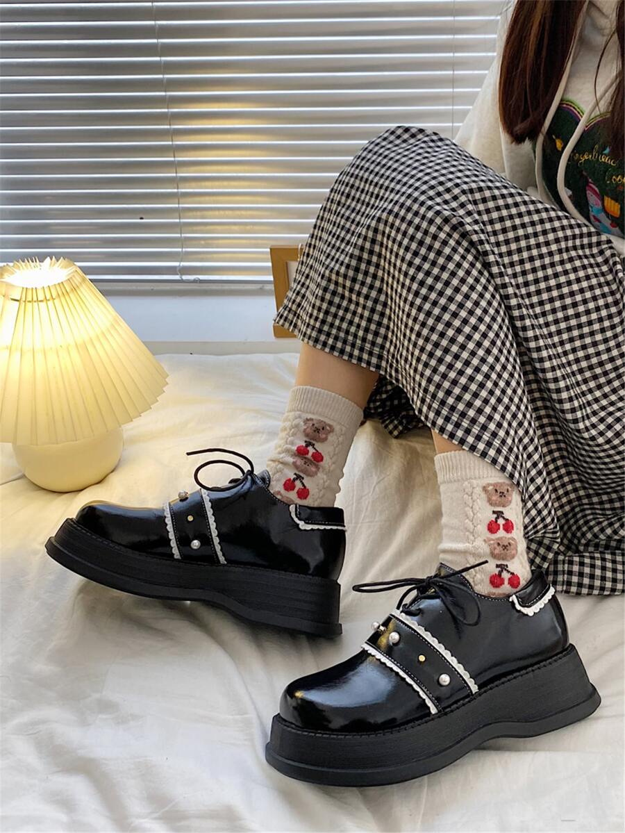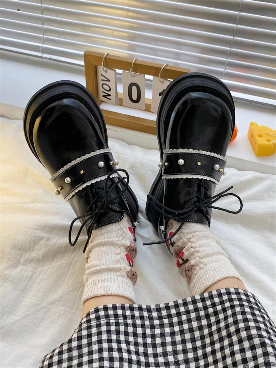 Zapatos con diseño de perla artificial plataforma