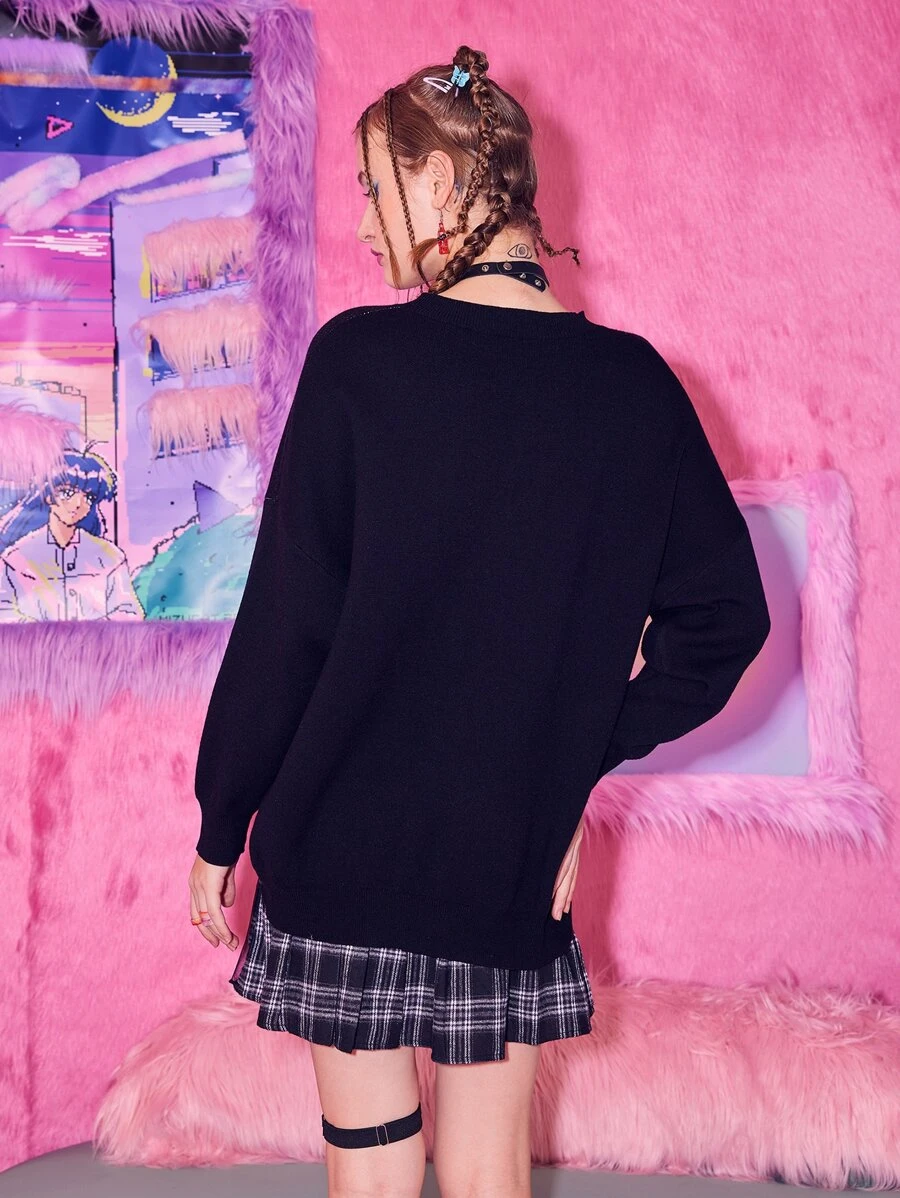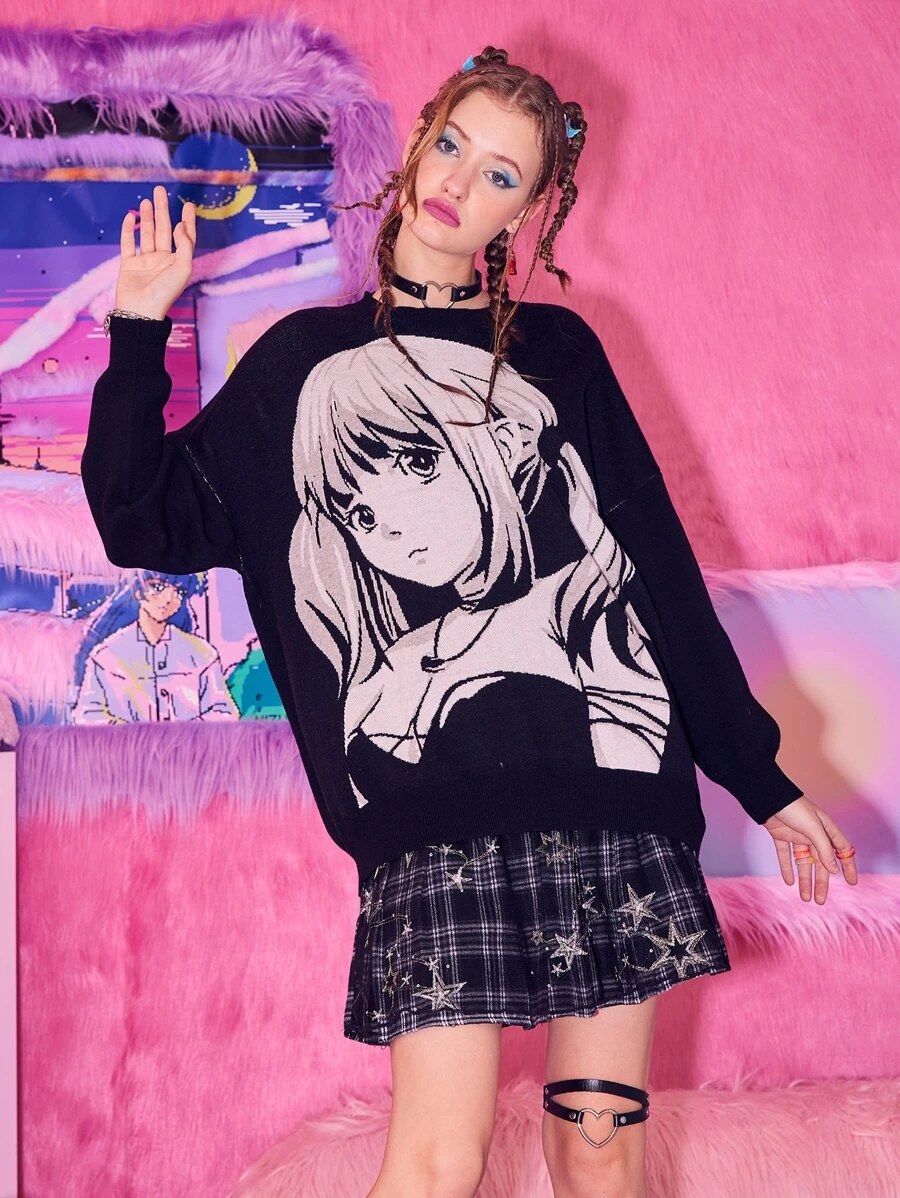 Anime Jersey con patrón de figura de hombros caídos