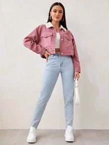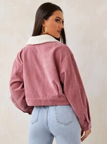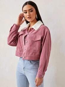 Cazadora con bolsillo con solapa de cuello en contraste de pana