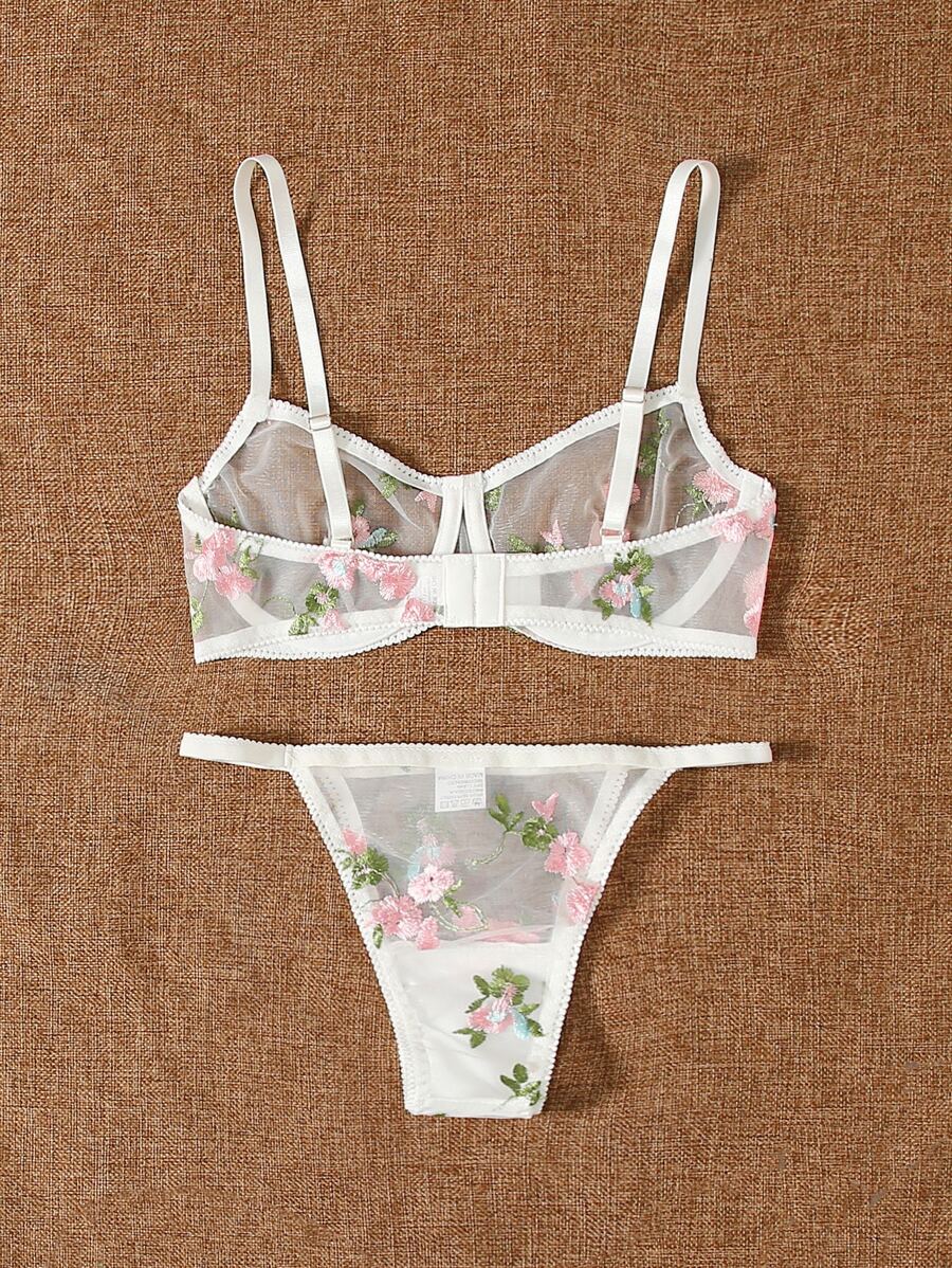 Set de lencería transparente con bordado floral