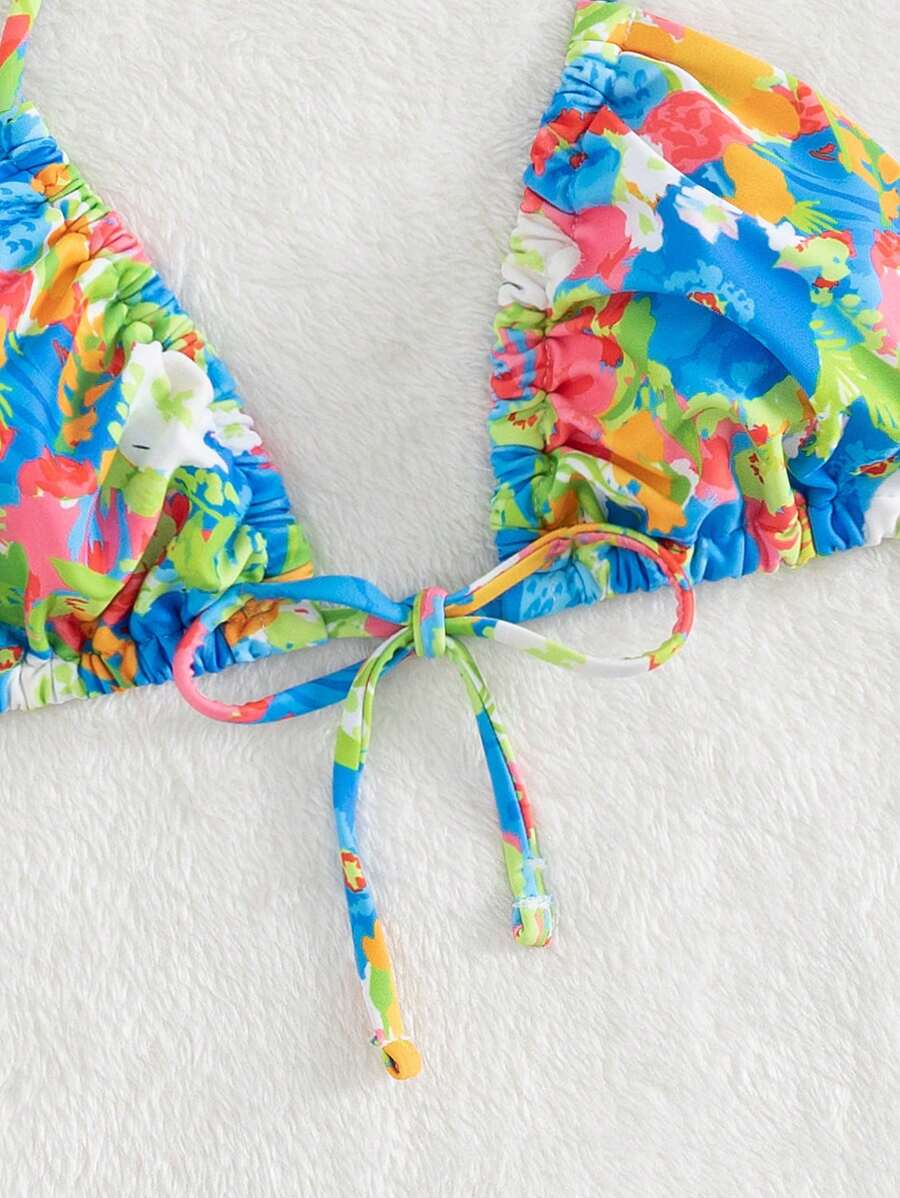 Top bikini triángulo con estampado floral halter