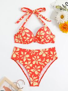 Conjunto de bikini con estampado floral y soporte acolchado para playa en verano