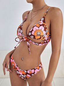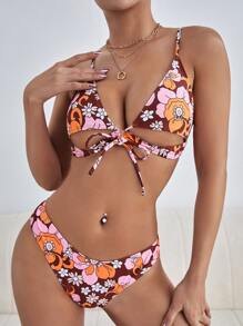 Bikini con corte y atado al frente con estampado floral, para vacaciones de verano en la playa