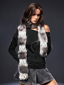 Goth Bufanda de estampado de leopardo marrón esponjoso con patchwork, accesorio versátil de moda y cálido, adecuado para Halloween, Navidad, ir al trabajo y uso diario, otoño/invierno