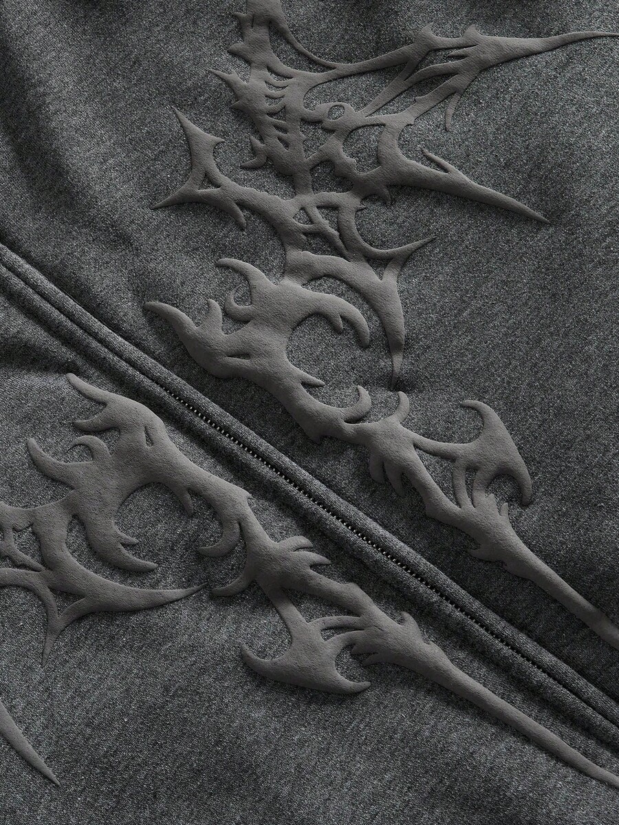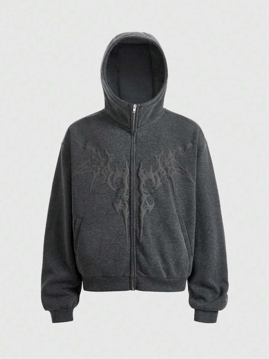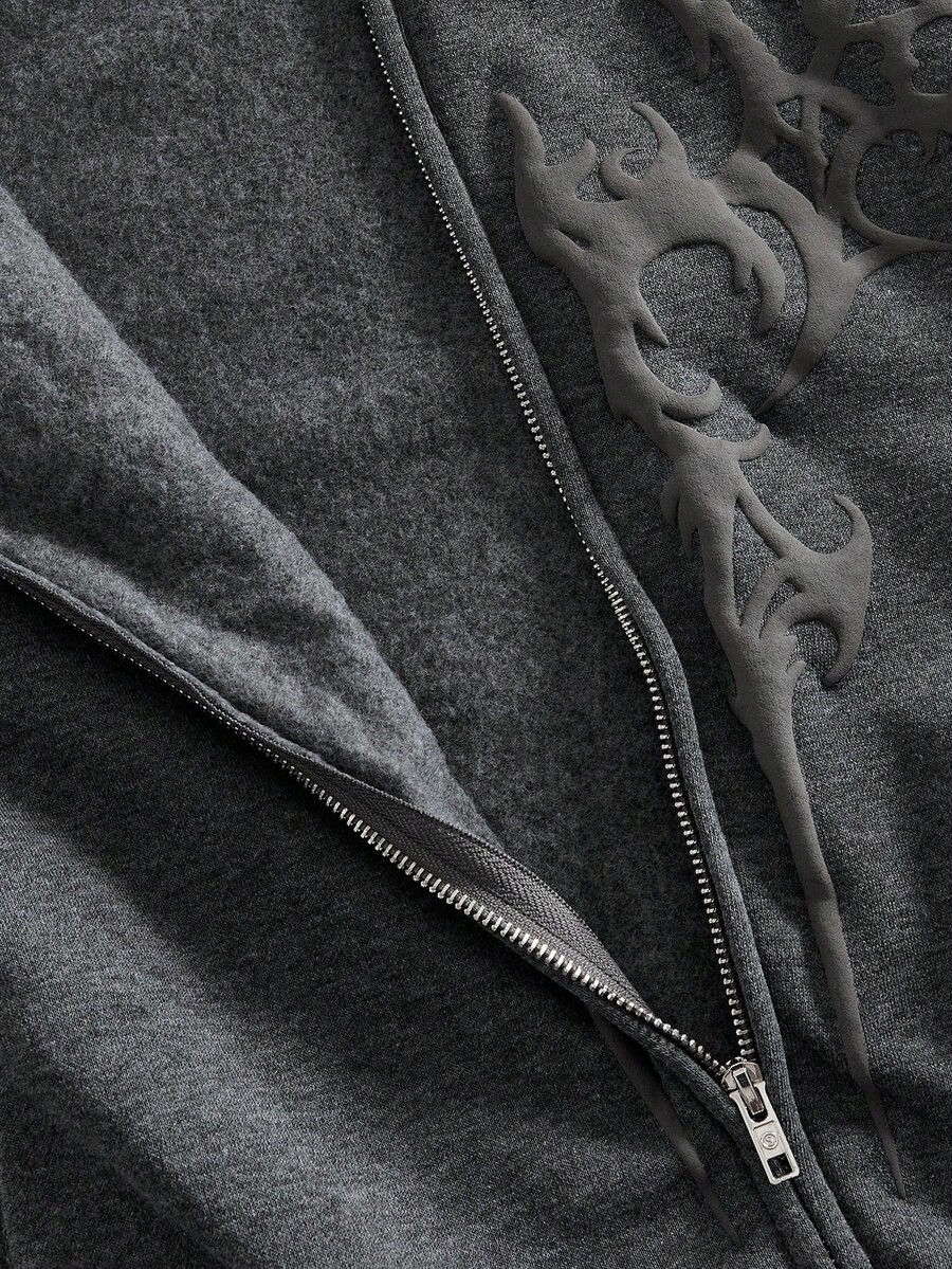 Friday the 13th X ROMWE Street Life Sudadera con capucha con cremallera y manga larga con patrón gráfico 3D para hombres
