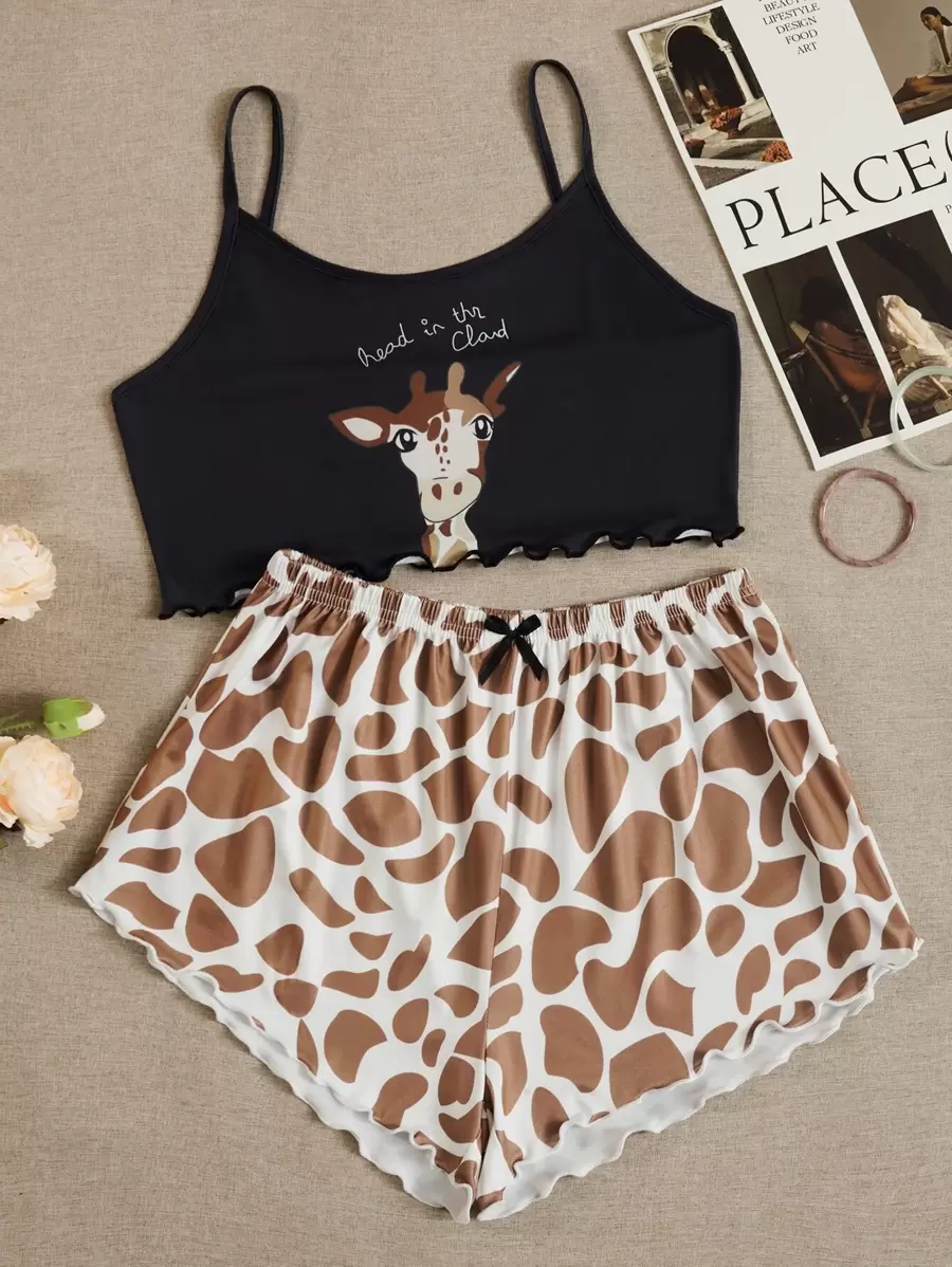 Conjunto de pijama jirafa & con estampado de slogan