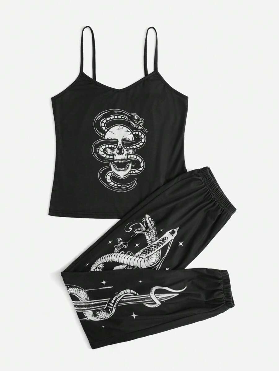 Goldenbaystudio Conjunto de pijama de cráneo & serpiente con estampado