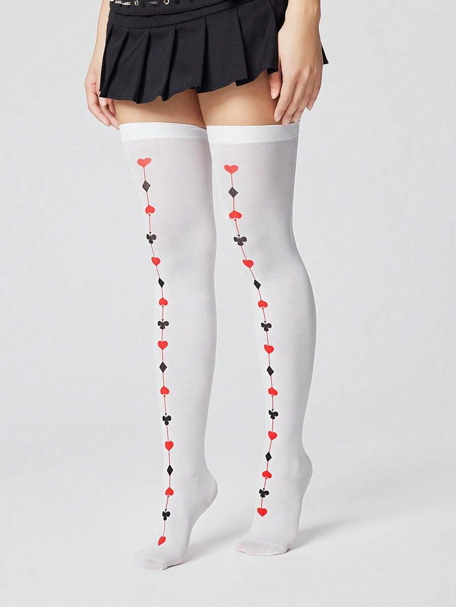 Goth 1 par de medias por encima de la rodilla para mujer a lunares negros y rojos, para todas las temporadas