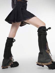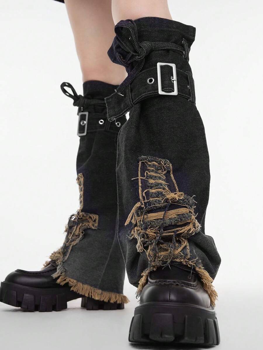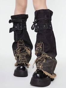 Goth 1 par negro mezclilla pierna de manga con con diseño de cruz