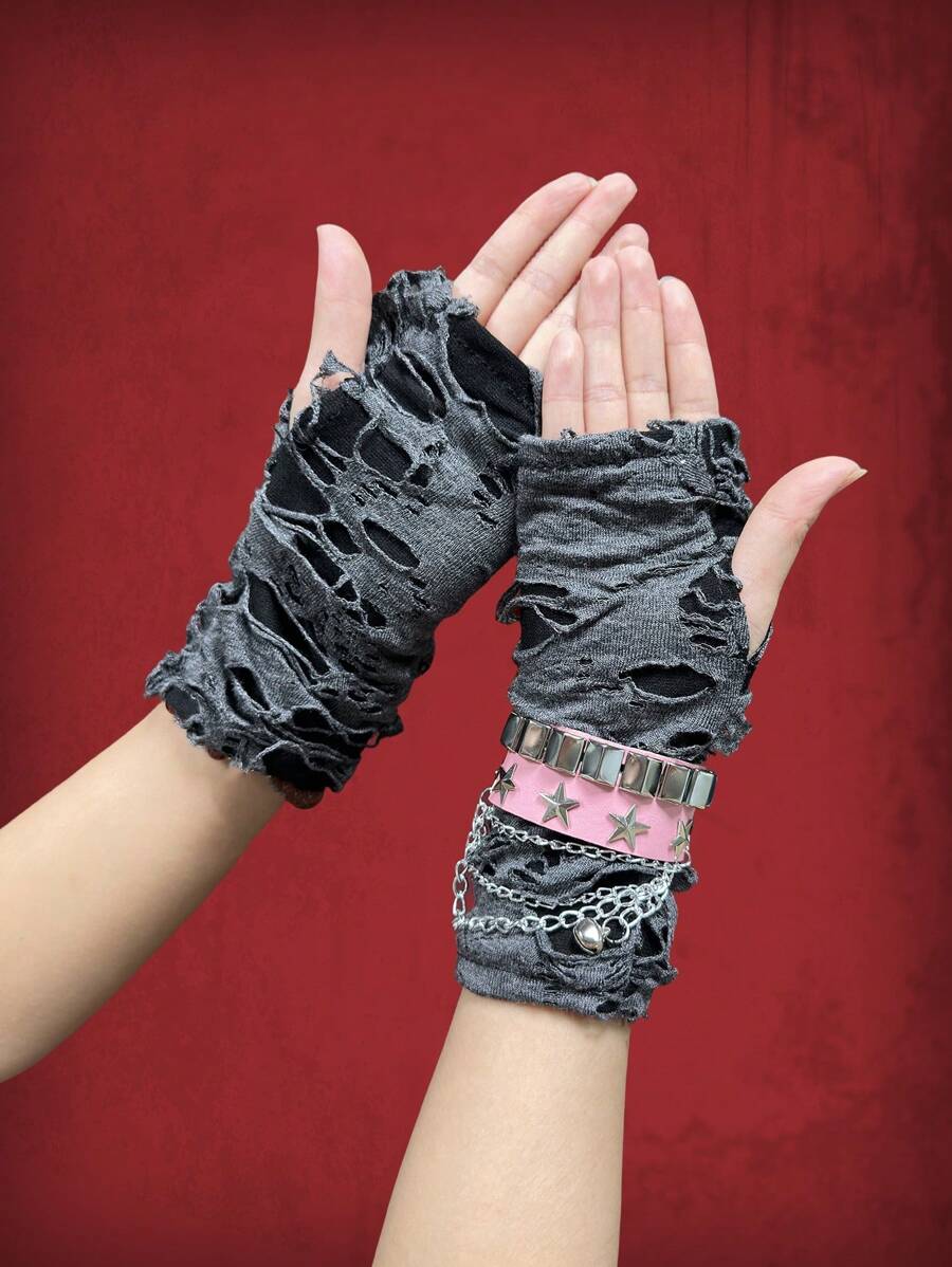 Goth 1 par sin dedos negro Guantes & rosado con diseño metálico Pulsera