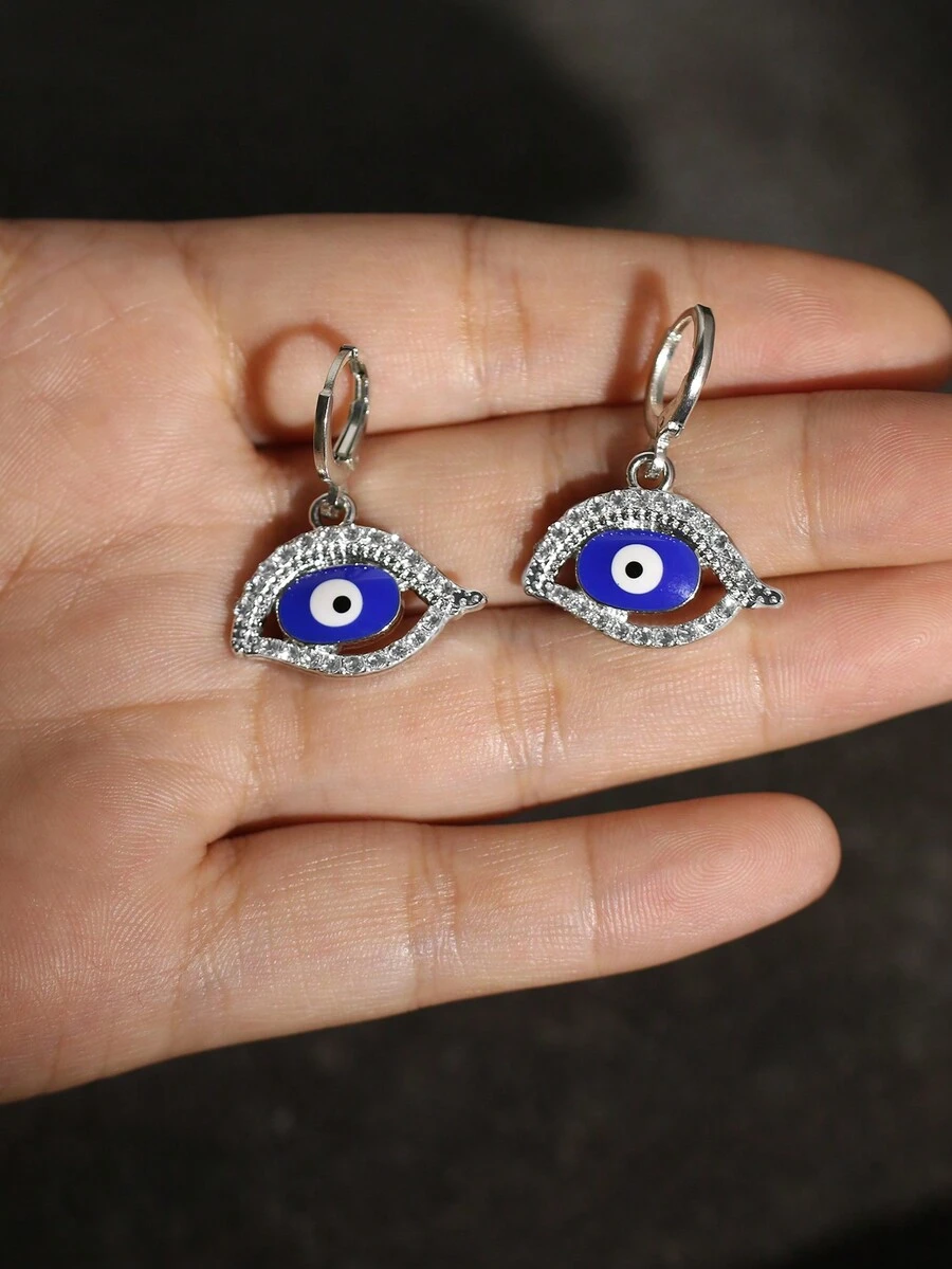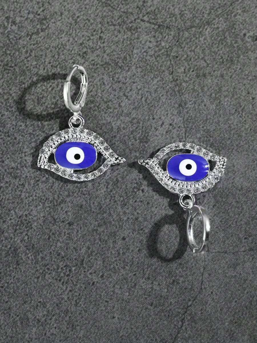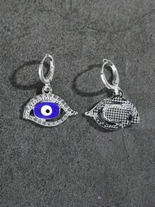 Goth 1 Par Pendientes Colgantes En Forma De Ojo Azul Oscuro Con Estilo Gótico Y Decoración De Piedras De Goteo De Aceite