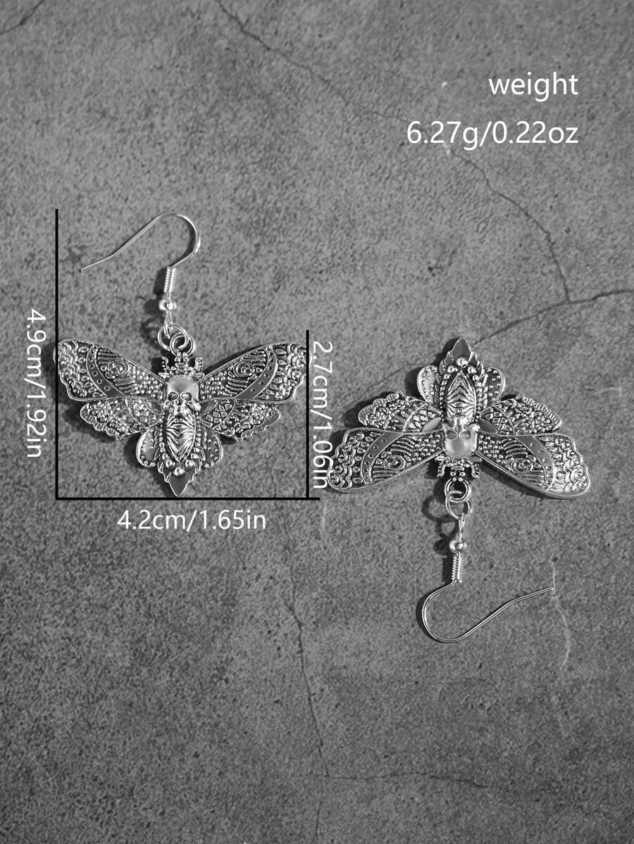 Goth 1 Par De Aretes De Colgantes En Forma De Polilla Y Cráneo Con Estilo Vintage Punk