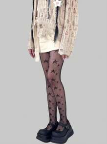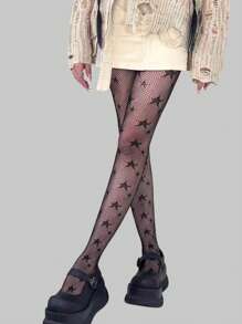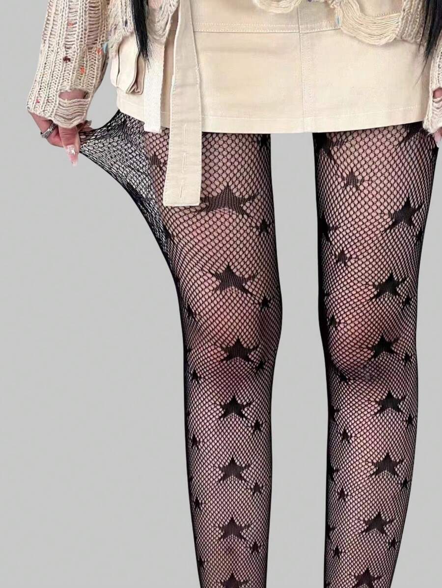 Goth 1 Par De Medias De Red Con Pentagrama Para Mujer Para Todas Las Estaciones