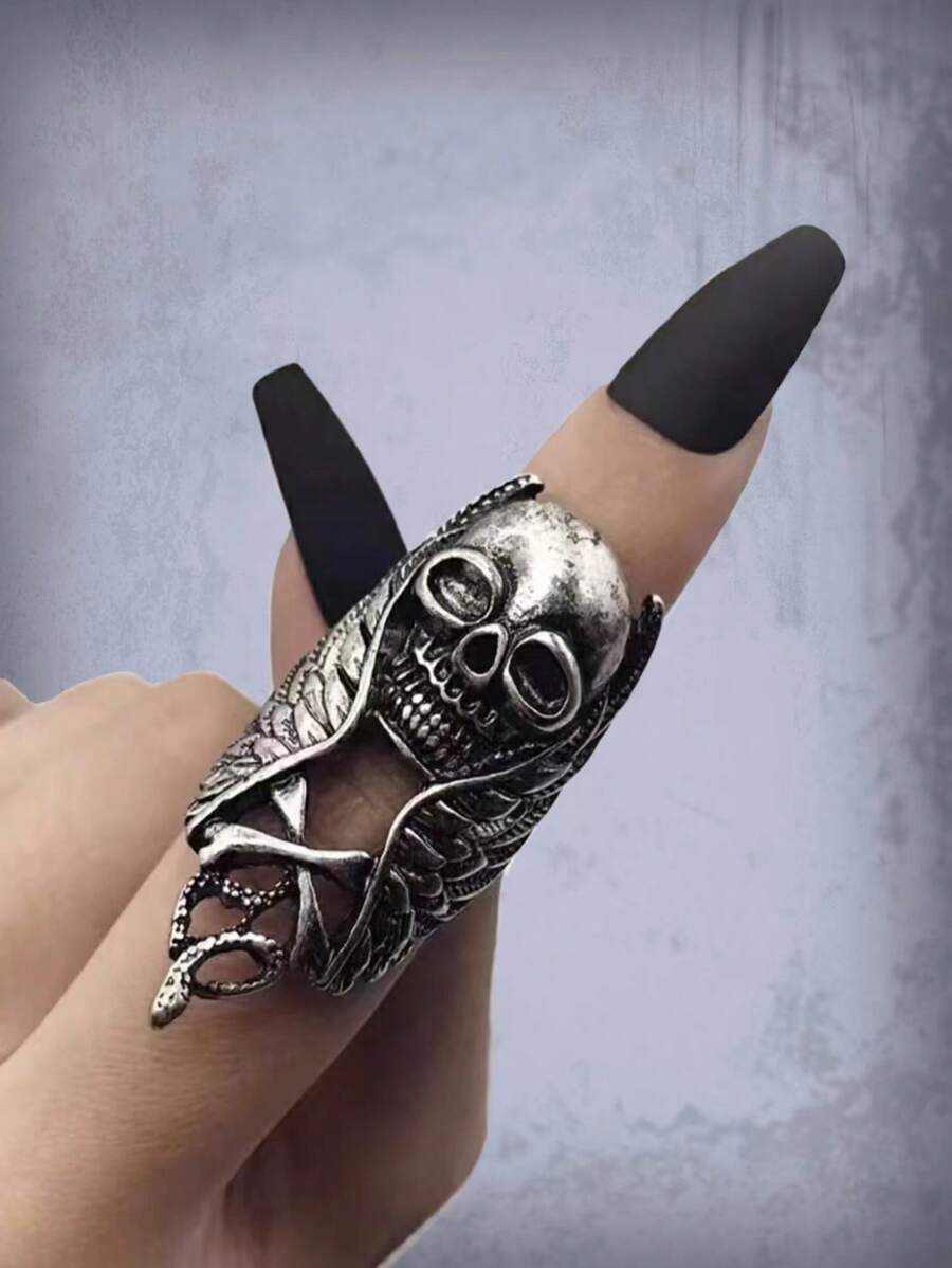 Goth 1 pieza Anillo miedoso aleación de zinc de cráneo & con diseño de ala para mujeres para decoración diaria