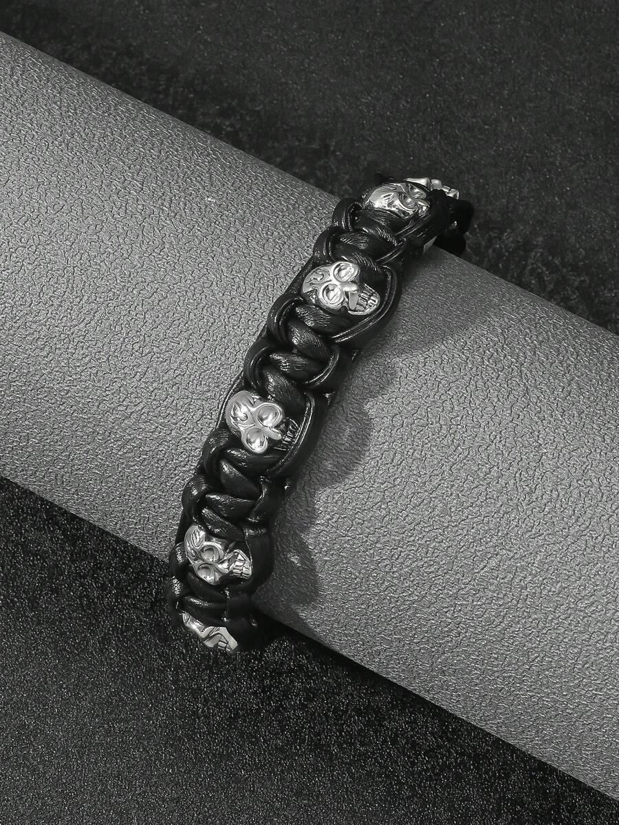 Goth 1 Pulsera Trenzada De Piel Pu Con Cabeza De Calavera Gótica Oscura, Adecuado Para Uso Diario De Hombres