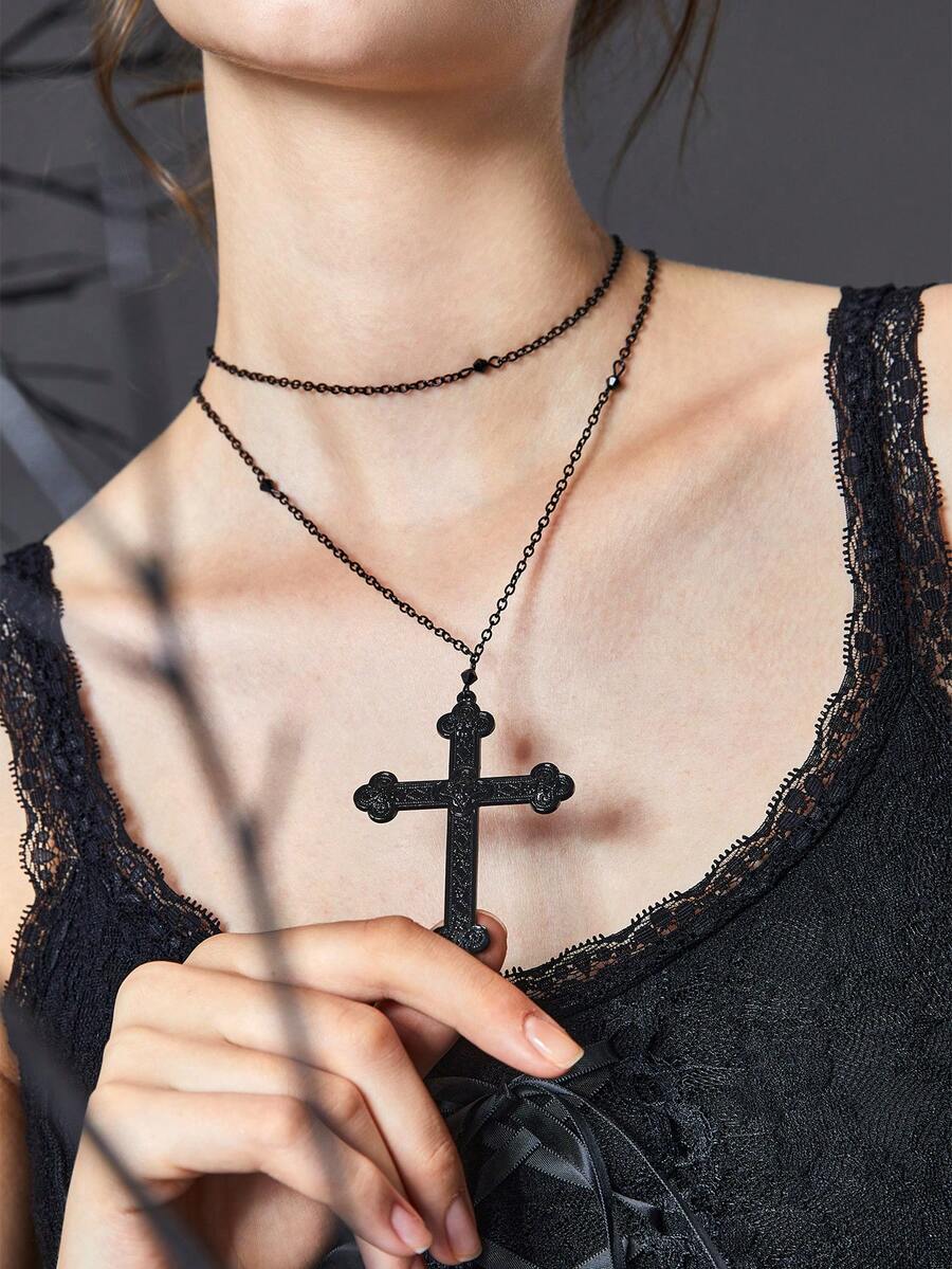 Goth 1 pieza Collar con colgante estilo gótico cruzado en forma de largo