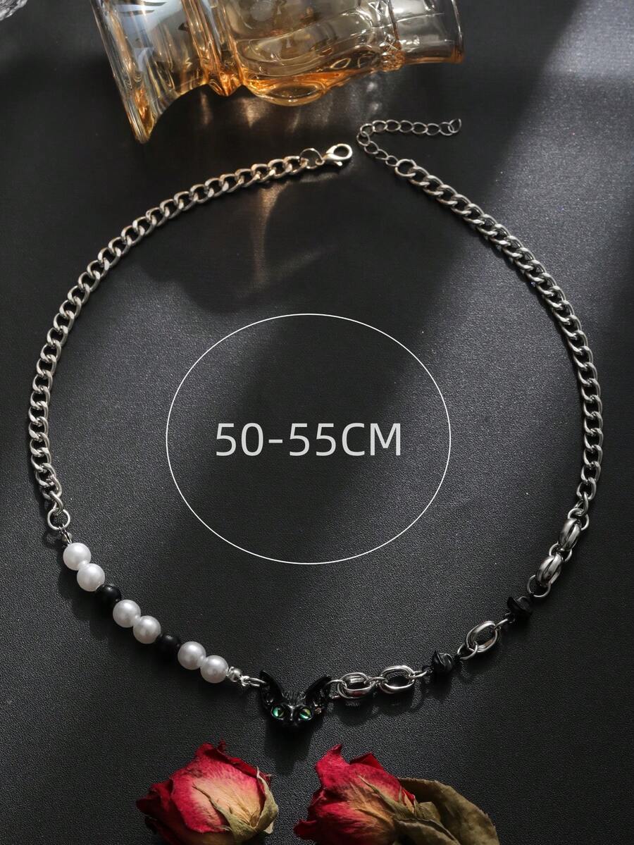 Goth 1 Pieza Collar Con Colgante De Decoración De Gato Oscuro Y Perla Estilo Gótico Para Mujer