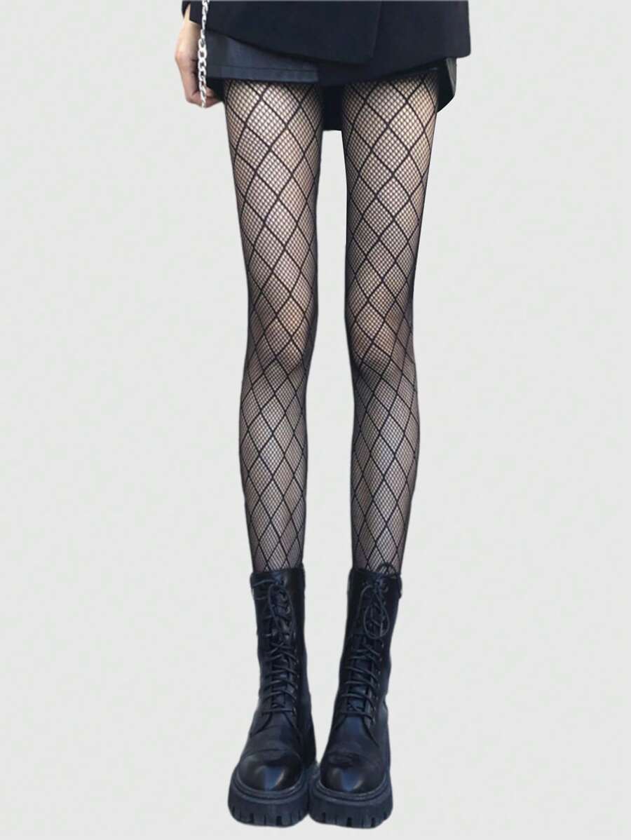 Goth 1 Pieza Medias De Red Negras Para Mujeres