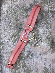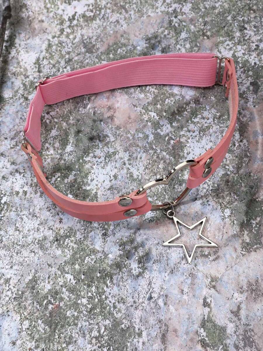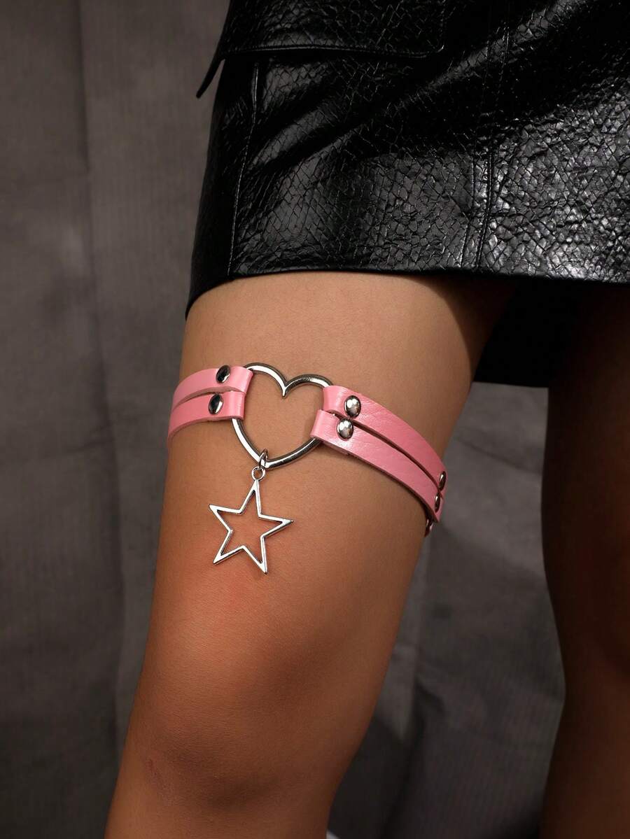 Goth 1 Pieza Banda De Muslo De Doble Capa De Pu Con Diseño De Estrella Y Cadena Para Piernas Con Colgante De Corazón, Sexy