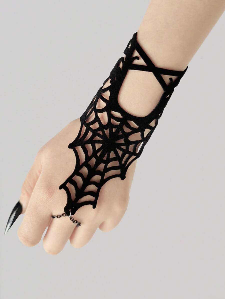 Goth 1 pieza Brazalete sin dedos negro con espinas de estilo gótico único para mujeres