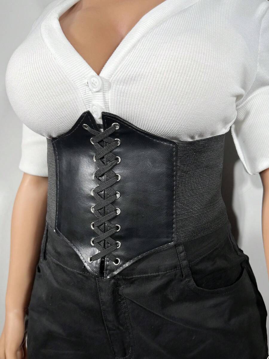 Goth 1 pieza de mujeres negro geométrico cintura con cinturón con ojal Decoración de vestido , casual con versátil