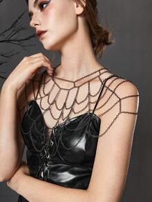 Goth 1 pieza de mujeres negro telaraña en forma de adorno gótico Cadena para cuerpo , Halloween Accesorio