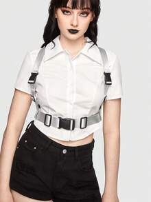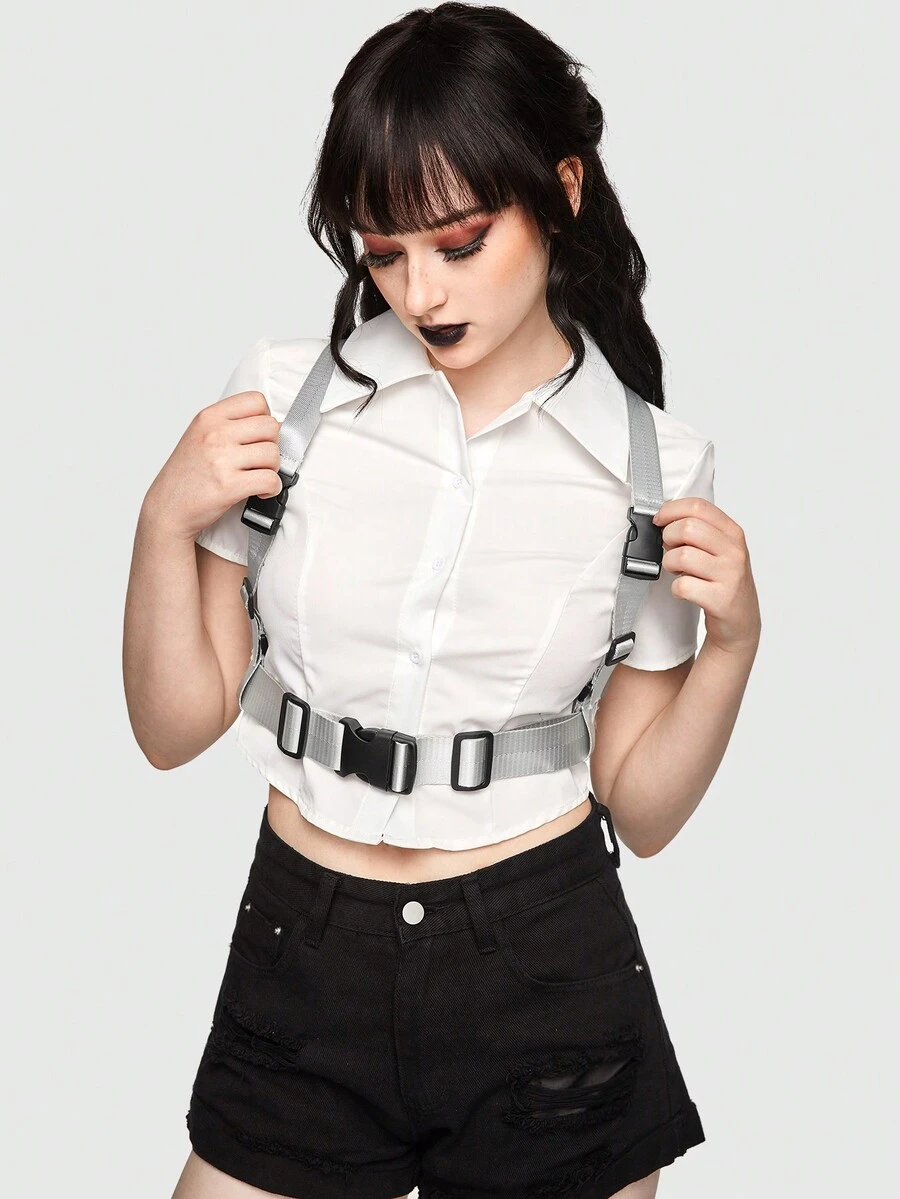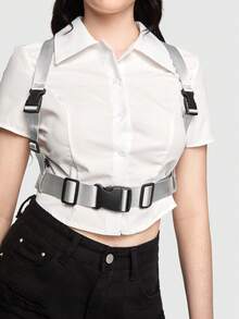 Goth 1 pieza Tirantes de mujeres plata de plástico hebilla doble faz de lona versátil para cada día usar