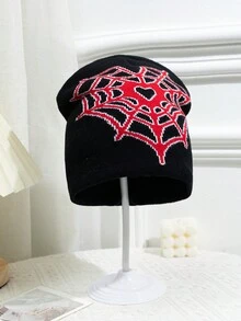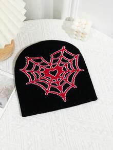Goth 1 pieza de mujeres Y2K Love con corazón telaraña jacquard Sombrero tejido , punk estilo callejero Gorra de hip hop