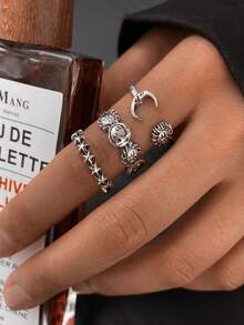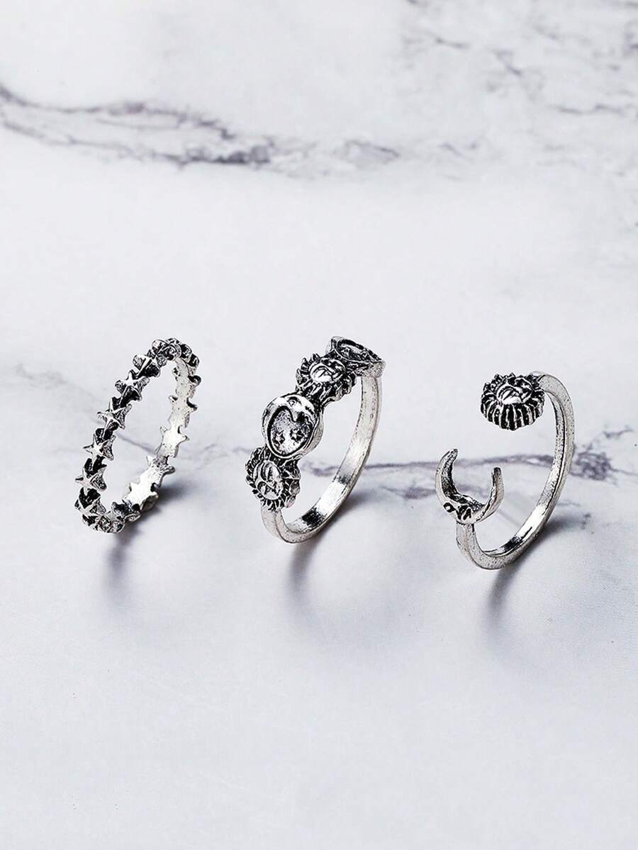 Goth 1 Juego/3 Piezas De Anillo De Estrella Y Luna