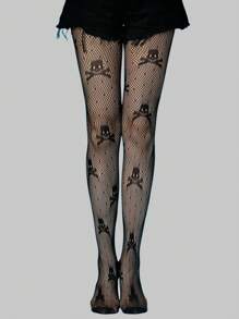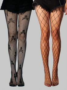 Goth 2 Pares Medias De Red De Patrón De Esqueleto Negro Y Lunares Para Mujer Para Cuatro Estaciones