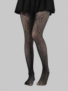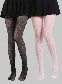 Goth 2 Pares De Medias De Red Con Diseño De Araña De Mujeres En Blanco Y Negro, Adecuadas Para Todas Las Estaciones