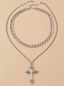 Goth 2 Piezas Conjunto De Collar De Hombres Con Colgante De Cruz De Estilo Punk Hip-hop