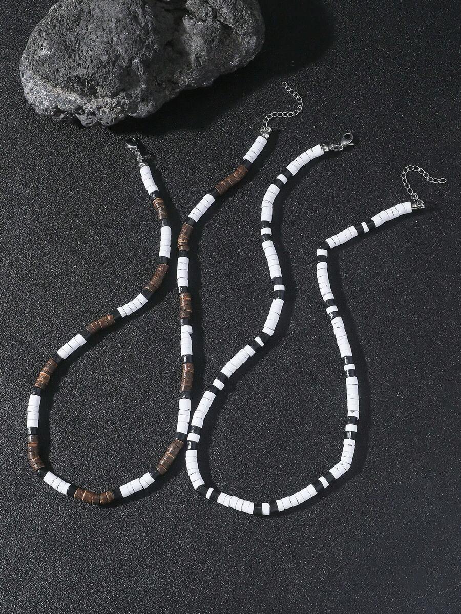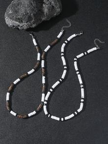 Goth 2 piezas/Set de collares de cuentas asimétricos de concha de coco natural vintage de moda para hombres