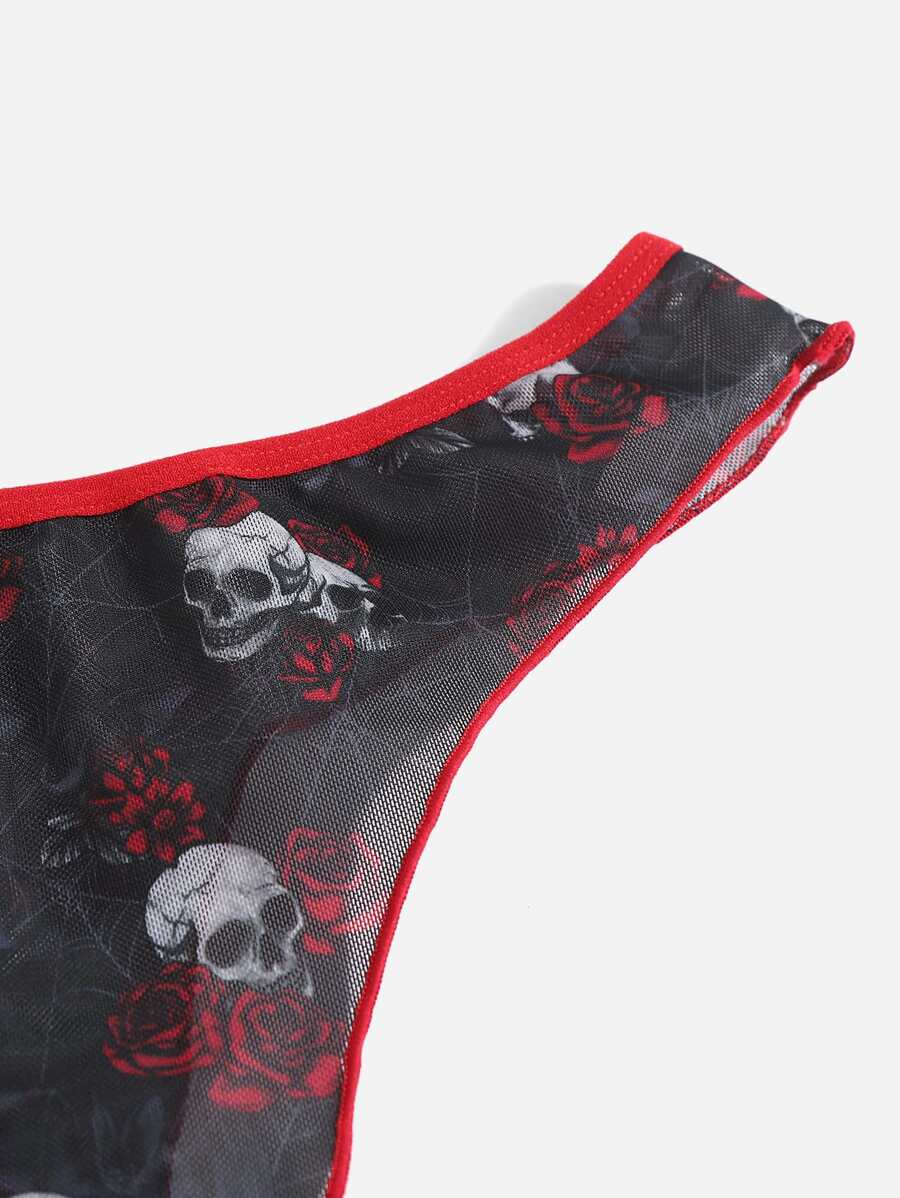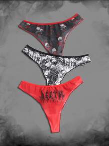 Goth 3 piezas Set bragas con letra floral & con estampado de cráneo